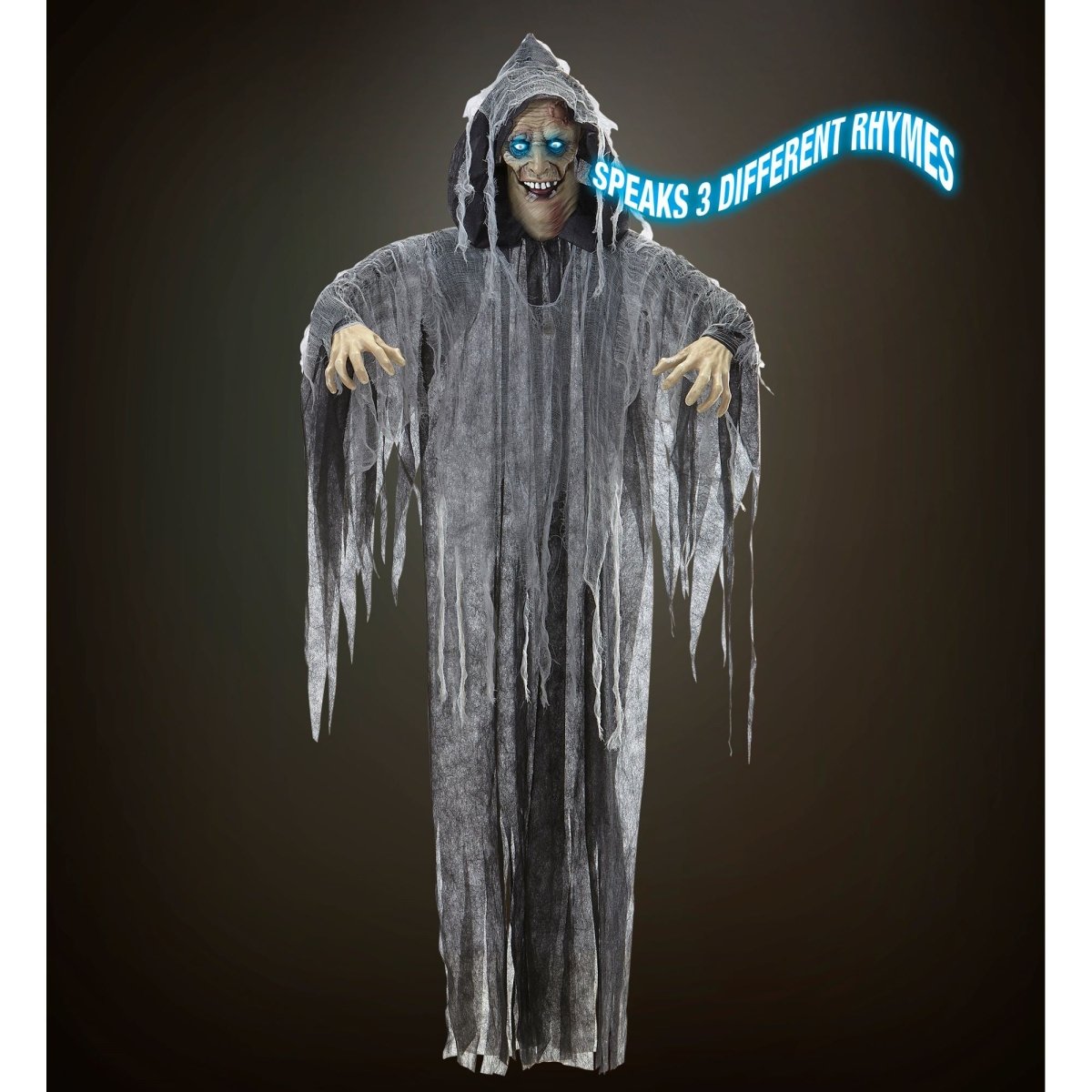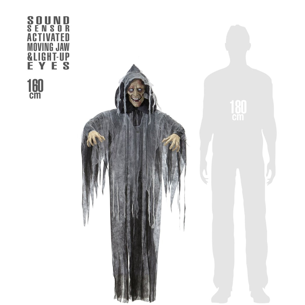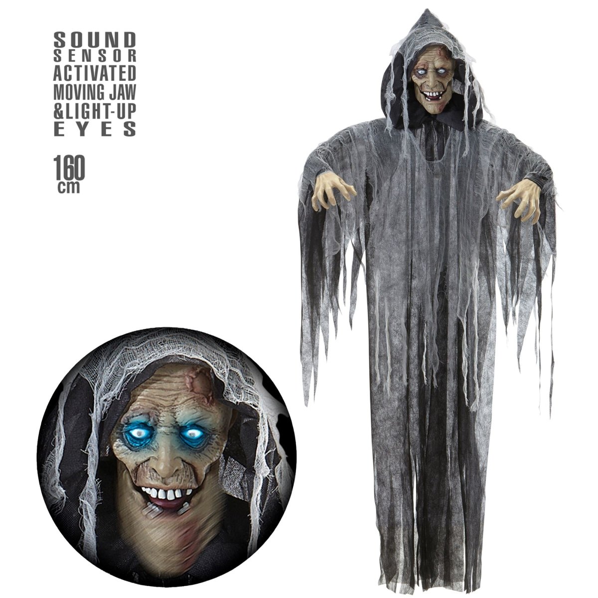 Halloween-nukke harmaa zombi, jossa on ääni, valo ja liike