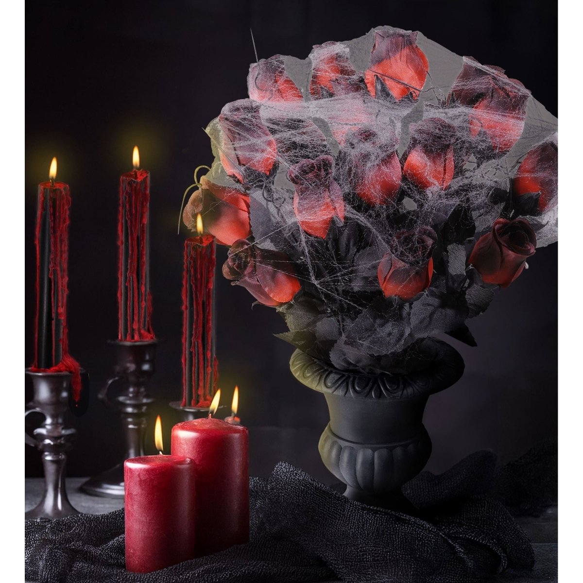 Halloween pöydän koristelu maljakko ruusuilla