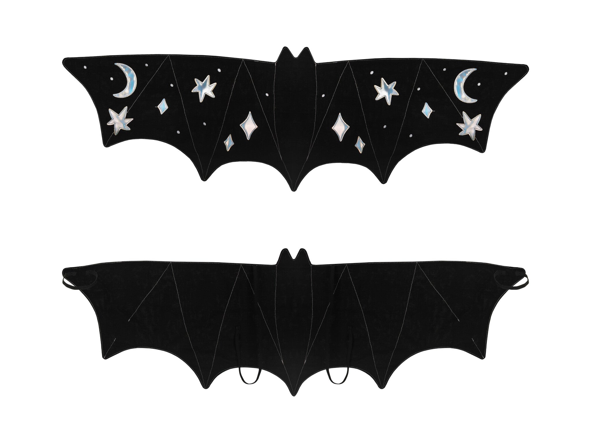 Asenne - lepakkosiivet, musta, hopeisilla elementeillä. Soveltuu 3-7-vuotiaille lapsille.