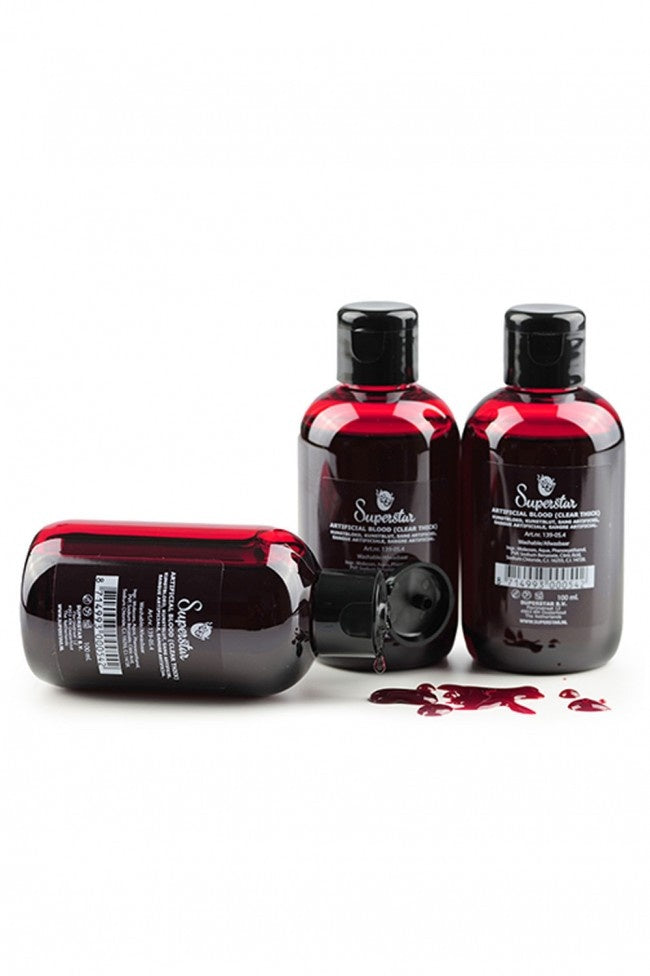 Yhdistelemällä tämän veren vaaleita ja tummia sävyjä voit saada aikaan hämmästyttävän realistisen vaikutelman. Se sopii täydellisesti haavoihin, erikoistehosteisiin ja Halloweeniin. Superstar Fake Blood, Clear Thick Clotting toimitetaan muovipullossa, jossa on kätevä annostelukorkki tarkkaa levitystä varten.