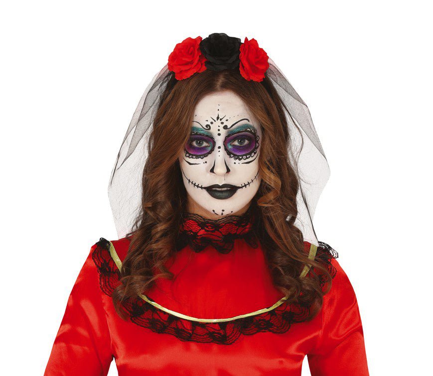 Halloween Tiara huntu ja kukkia punainen