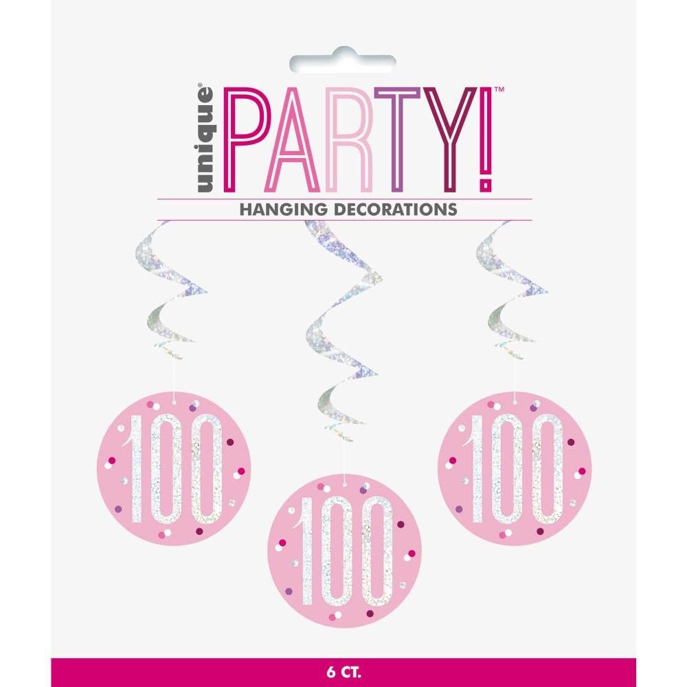 Ripustettava koriste 100 vuotta vaaleanpunainen 81cm 6kpl