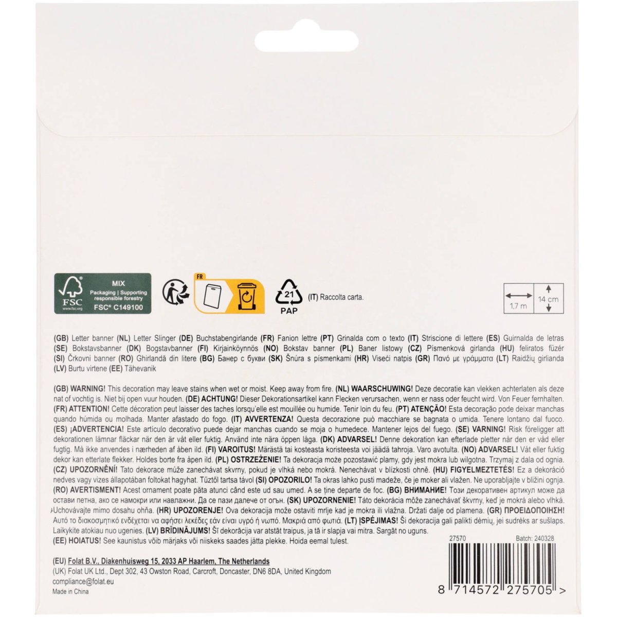 Synttärisankari tekee aina maalin! Kirjekoristekoristesetti - Fantastinen jalkapallo - 1,5 metriä. Sisältö: 1 kirjainhelminauha kahdessa osassa. Käytetään esimerkiksi seuraavissa juhlissa/juhlatilaisuuksissa: Lastenjuhlat, Syntymäpäivä. Seppele koostuu kahdesta osasta: seppele, jossa on teksti "HAPPY BIRTHDAY " (kirjaimet n. 14 cm korkeita), jonka molemmilla puolilla on kultainen mestaruuspokaali, ja seppele, jossa on teksti "ITS A GOAL" (kirjaimet n. 14 cm korkeita), jonka molemmilla puolilla on jalkapallomaali. Painettu molemmille puolille. Kaikki osat voidaan liu'uttaa edestakaisin vaaleanharmaan nauhan päällä. Kaikki kultaiset yksityiskohdat kiiltävät aidosti käytetyn kuumaleimaustekniikan ansiosta. Molempien seppeleiden nauhojen pituus on 1,7 metriä. Tämä kirjekoristesetti kuuluu Folat Fantastic Football -mallistoon. Tämä tuote on valmistettu paperista.