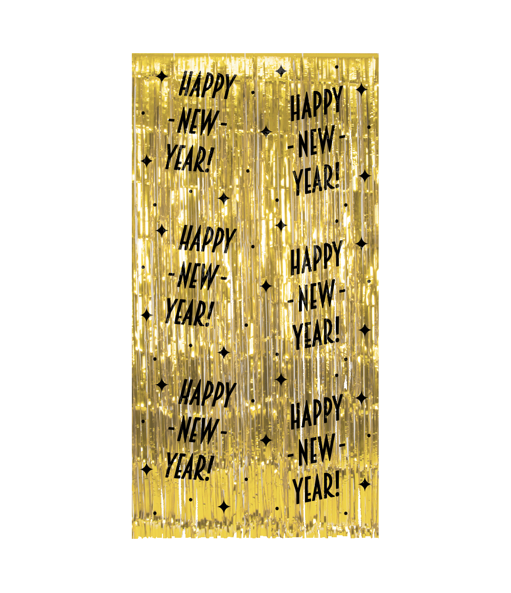 Hyvää uutta vuotta Ovi verho Gold Musta