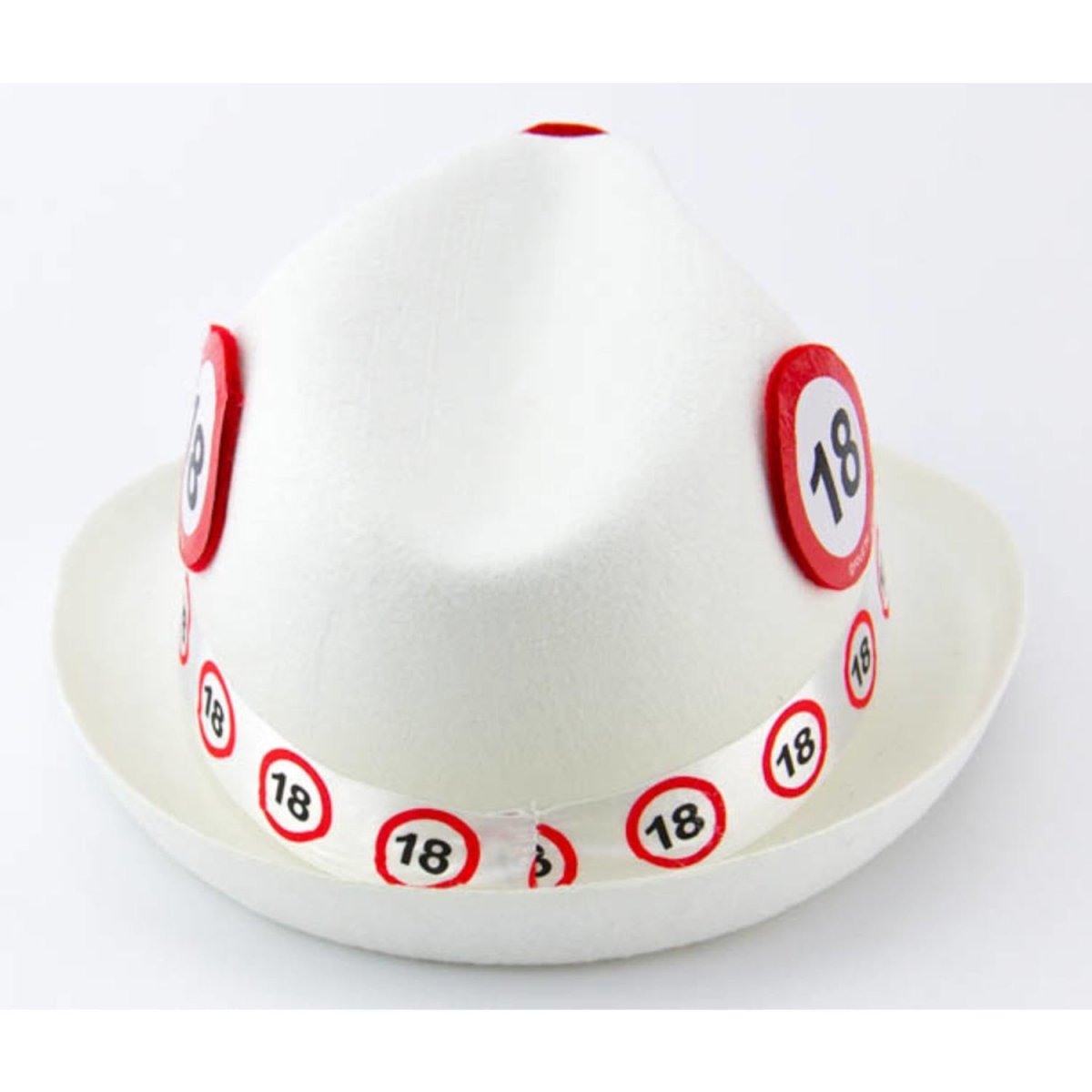 18 vuotta Valkoinen trilby-hattu Liikennemerkki. Sisältö: 1 hattu, väri: valkoinen. Käytettäväksi esimerkiksi seuraavissa juhlissa/juhlatilaisuuksissa: Karnevaalit, teemajuhlat, Halloween. Tämä hattu on 23cm leveä ja 37cm korkea. Tuote on valmistettu polyesteristä.