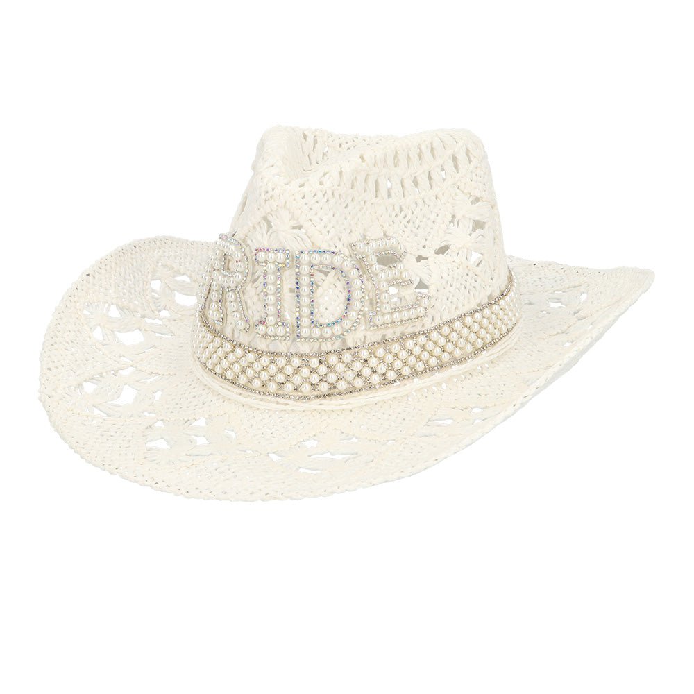 Morsiamelle, joka rakastaa luonnollista lookia ripauksella glamouria: Hat Cowboy Summer 'Bride' on tyylikäs valinta boho polttareihin tai festivaalihäihin. Kevyestä ja ilmavasta punotusta materiaalista valmistettu hattu on tyylikäs ja mukava, ja siinä on "BRIDE" -kiiltokirjaimet sekä siro helminauha, joka kimaltelee hienovaraisesti.