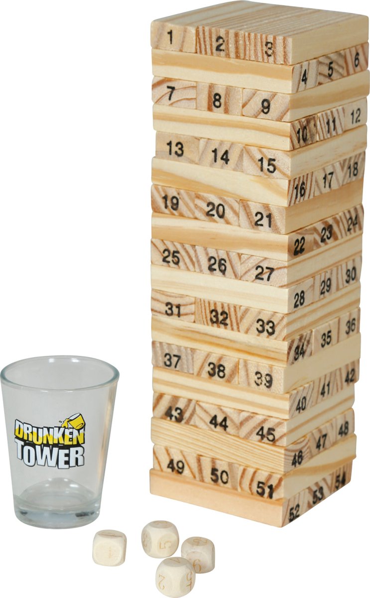 Pakkauksen sisältö: juomapeli, jossa 4 shottilasia