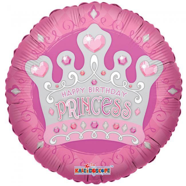 Helium ilmapallo Hyvää syntymäpäivää prinsessa kruunu 45cm tyhjä