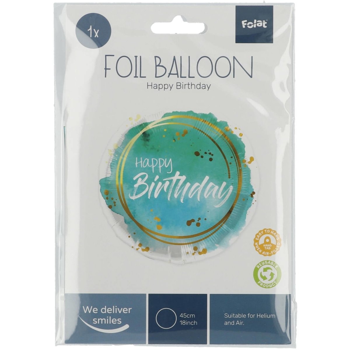 Helium ilmapallo Hyvää syntymäpäivää turkoosi tyhjä 45cm