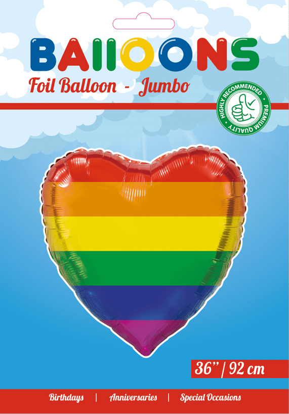 Helium ilmapallo sydän Rainbow XL tyhjä 92cm