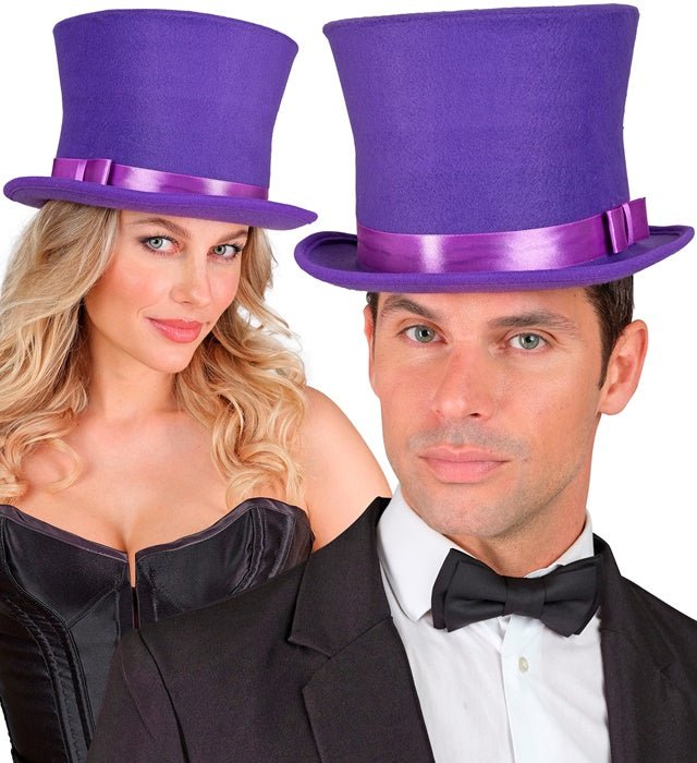 Anna asullesi näyttävä ja salaperäinen ilme tällä violetilla silinterihatulla. Täydellinen teemajuhliin, karnevaaleihin, esityksiin ja naamiaisiin.