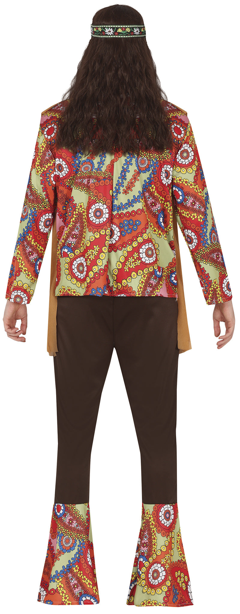 Hippie 60S puku värilliset miehet ruskealla liivillä