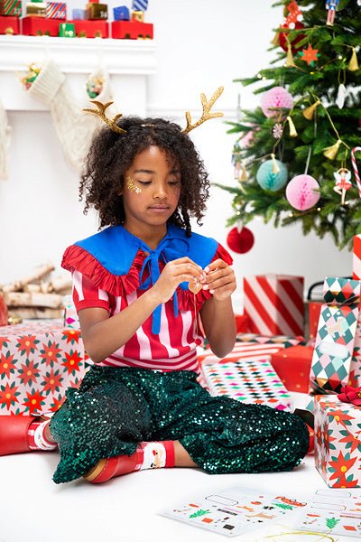 Metallinen pääpanta Poro, jossa kangassarvet kullanväriset, koko n. 34,5 x 22 cm.