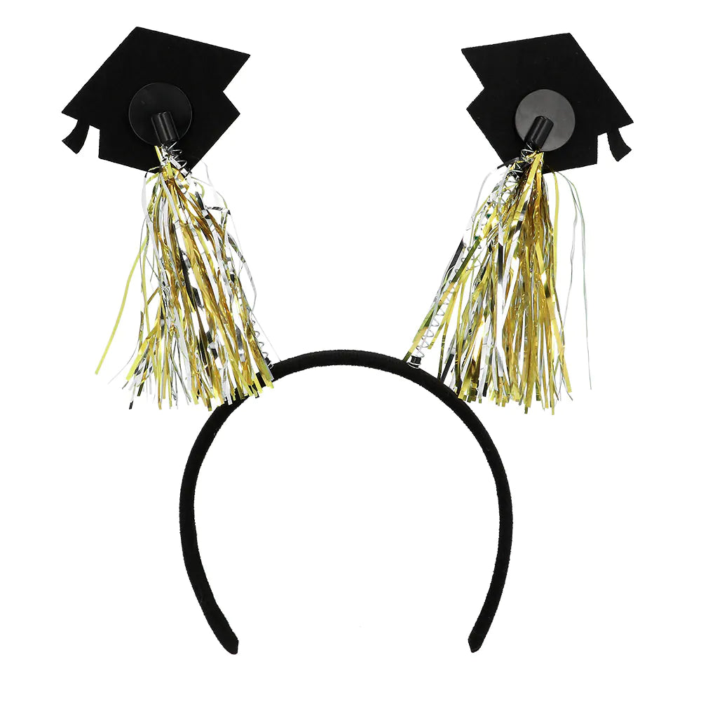 Valmistumisesta voi olla ylpeä. Tämä söpö valmistujaistiaara, jossa on pienet tohtorinhatut ja kultaiset tupsut, on siksi täydellinen lisävaruste, jolla saat valmistuneen valokeilaan.