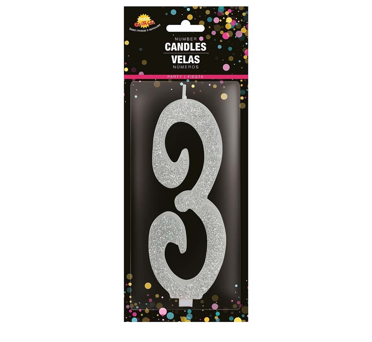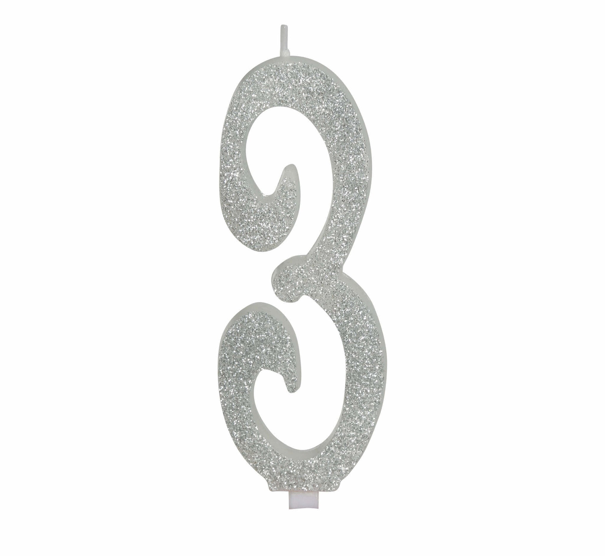 Hopeinen kynttilä 3 vuotta Glitter 12.5cm