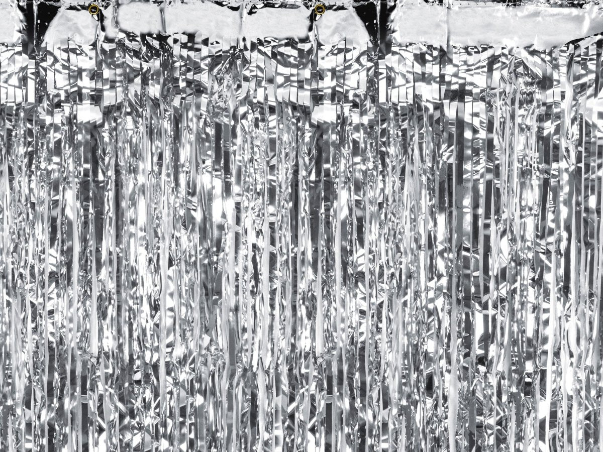 Sisältö: Partyverho, hopea, leveys n. 90 cm, korkeus n. 250 cm.