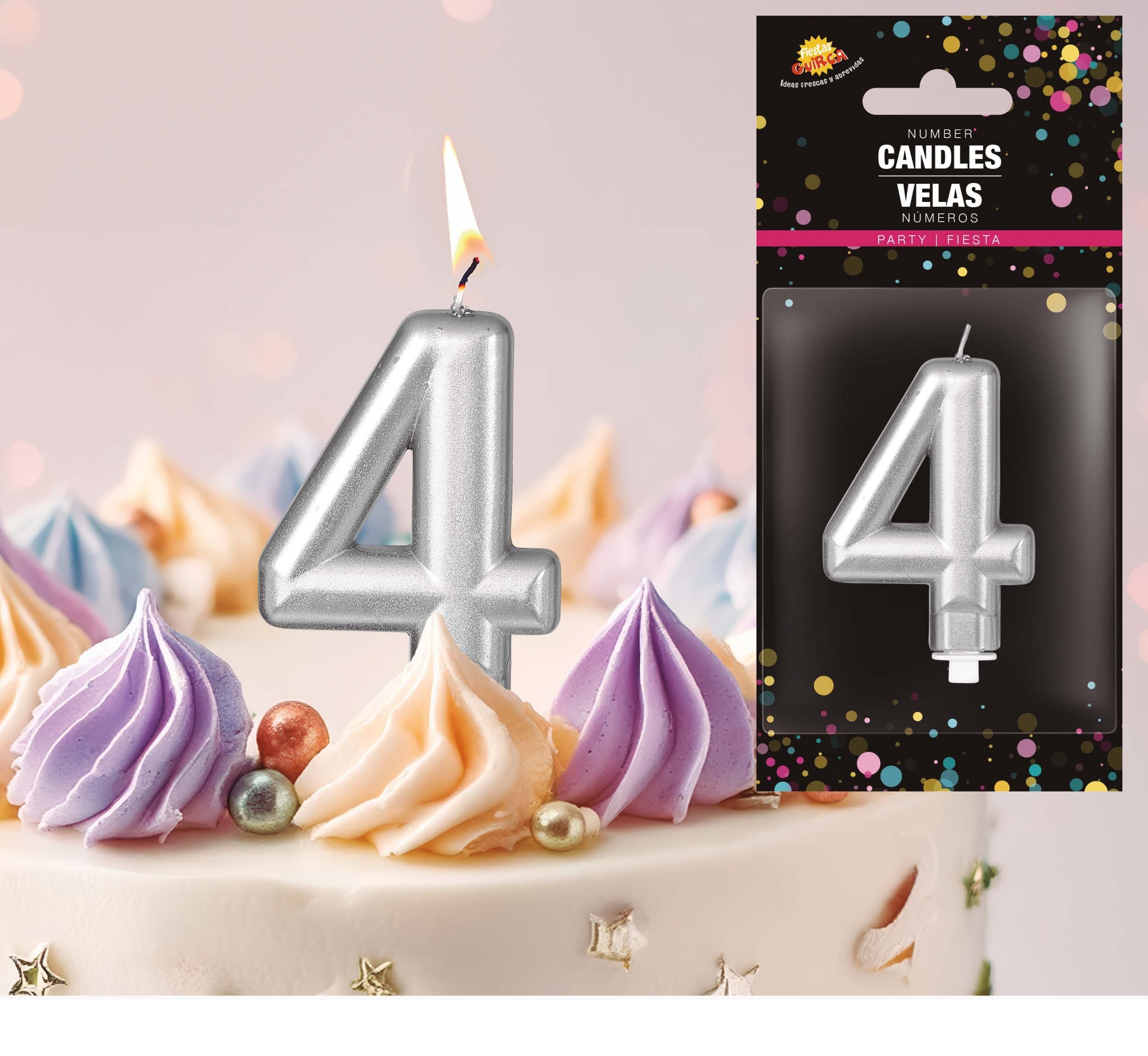 Hopeinen kynttilä 4 vuotta Metallinen 8cm