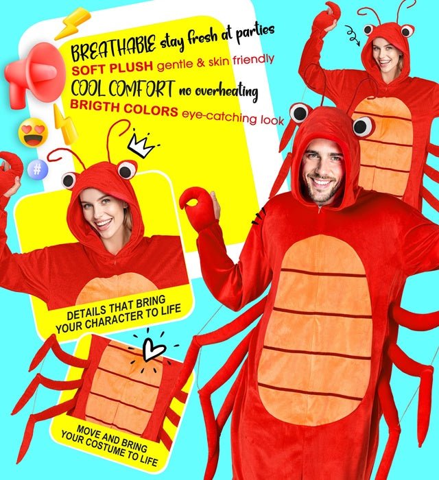 Tämä hummeri-plush-haalari, jossa on huppu ja naamio, on täydellinen naamiaisasu teemajuhliin tai cosplay