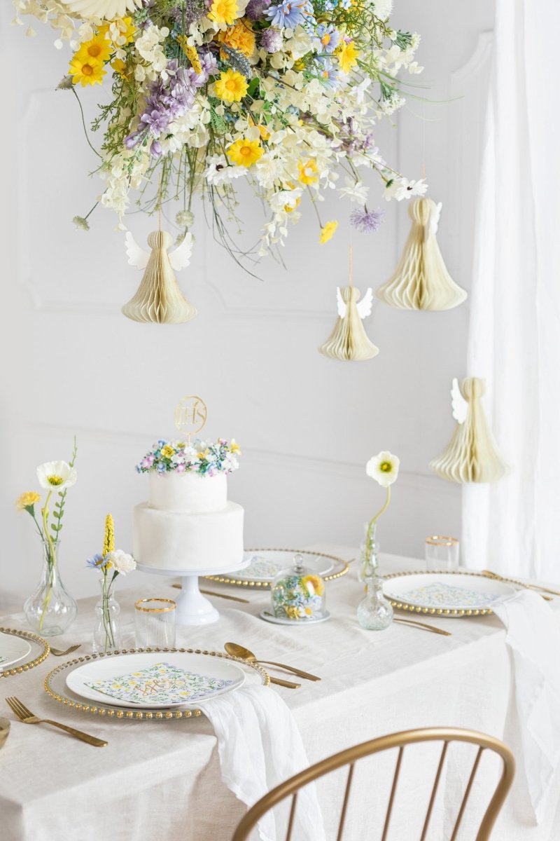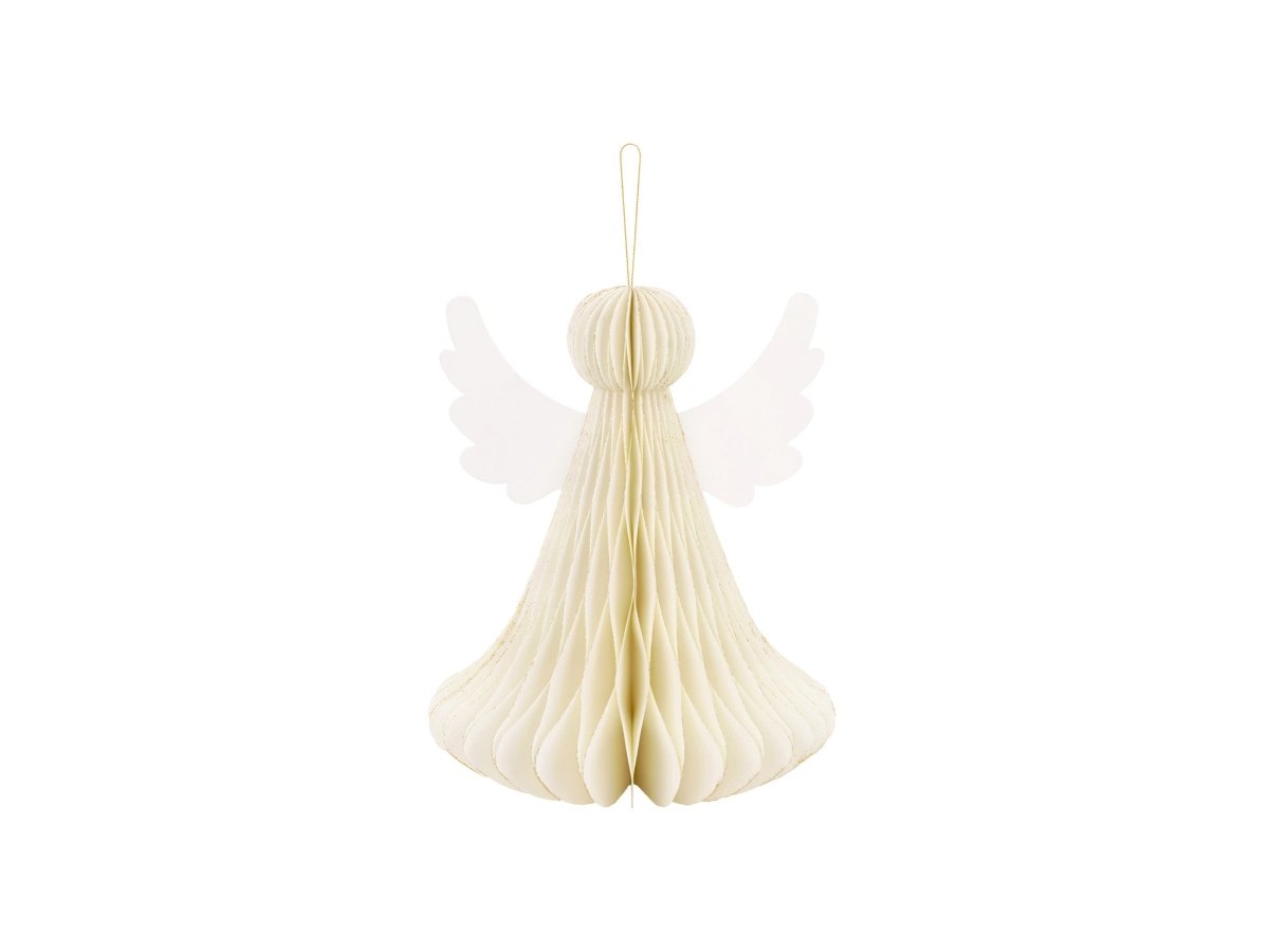 Paperikoristeinen hunajakenno Norsunluu enkeli, korkeus n. 24 cm.