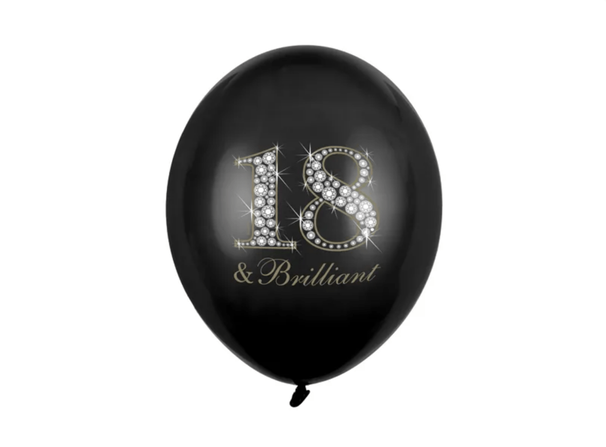 Ilmapallot 18 vuotta & Brilliant Black 30cm 6kpl 6kpl