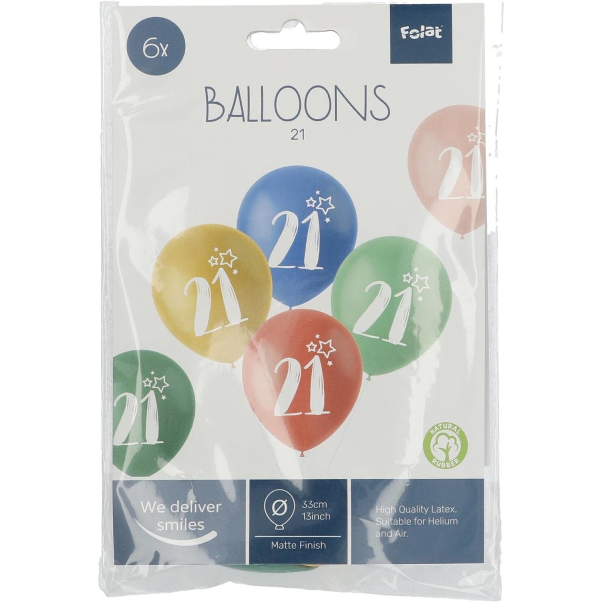 Ilmapallot 21 vuotta värilliset 33cm 6kpl