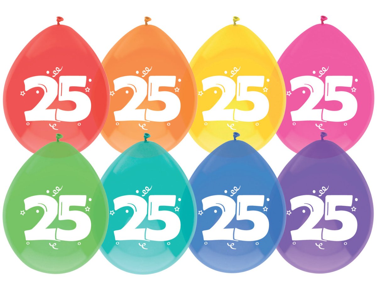 Ilmapallot 25 vuotta värilliset 30cm 8kpl