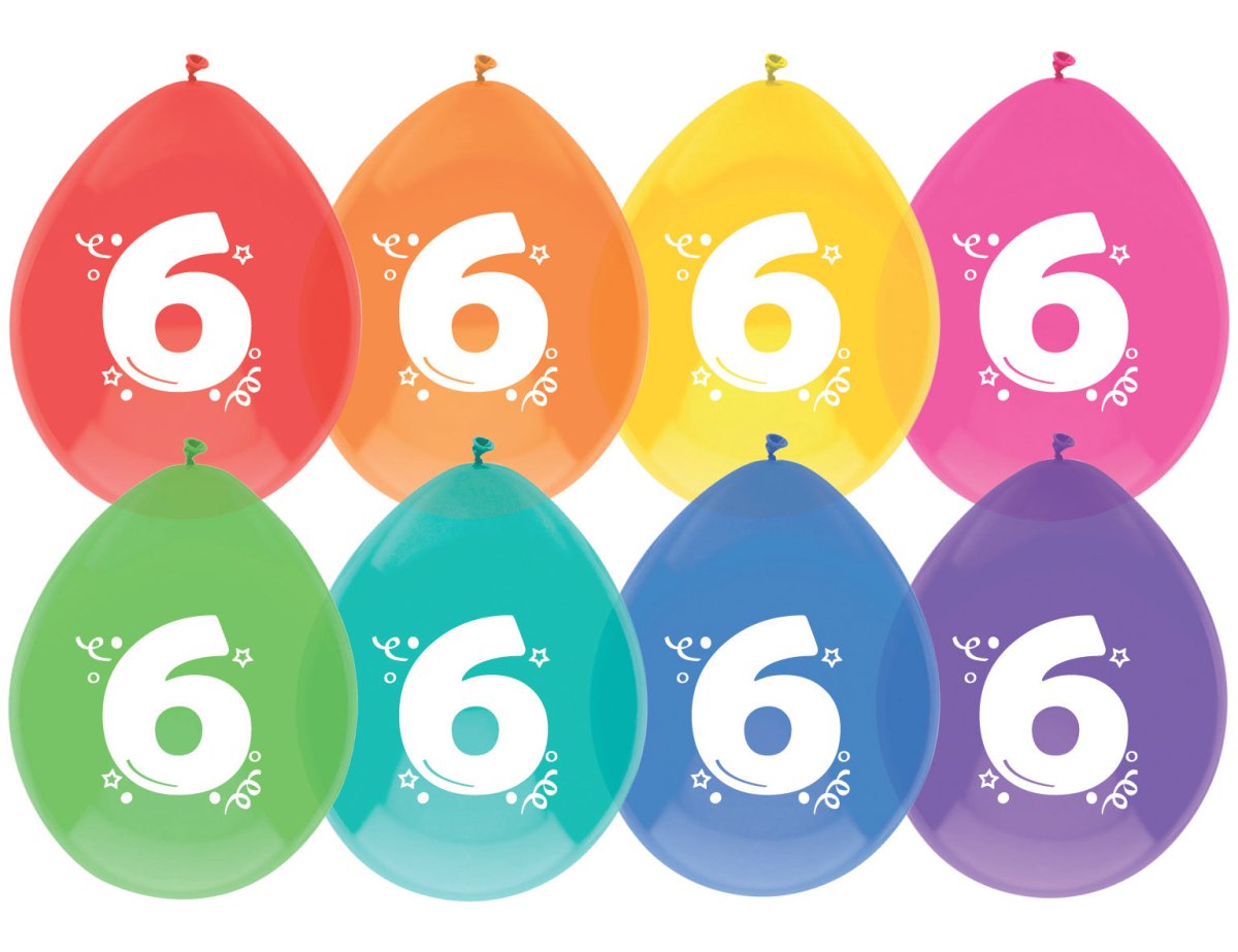 Ilmapallot 6 vuotta värilliset 30cm 8kpl