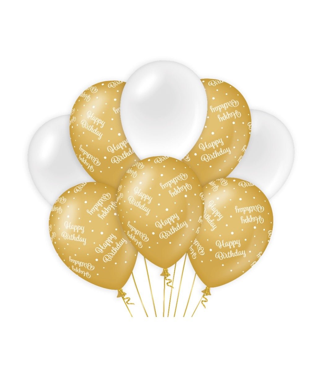 Ilmapallot Hyvää syntymäpäivää kultainen valkoinen 30cm 8kpl
