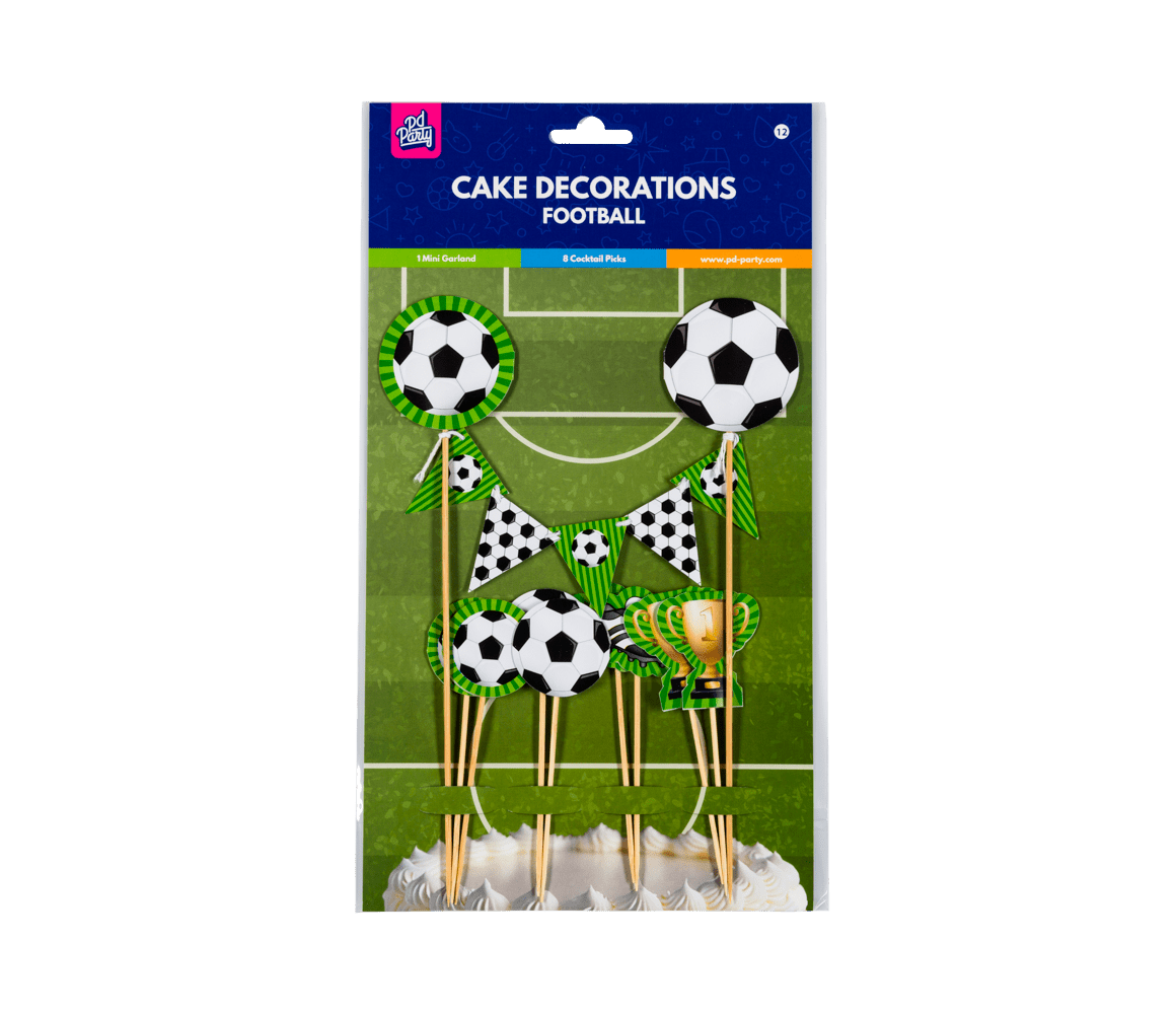 Tee mistä tahansa kakusta todellinen katseenvangitsija näillä kakkukoristeilla Jalkapallo! Lapsen syntymäpäivänä tämä on täydellinen koriste kakussa. Hammastikut on helppo työntää kakkuun tai kakkuun, jolloin niistä tulee näyttäviä.