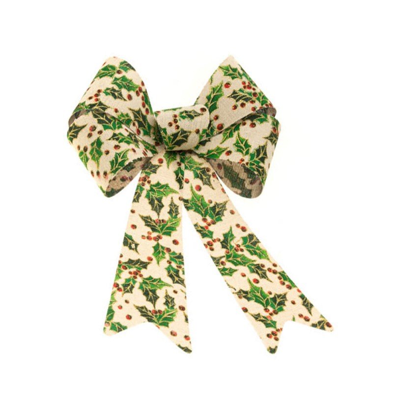 Täydennä juhlakoristeita tällä suurella Holly-keulalla. Runsaan kokonsa ja juhlallisen ulkonäkönsä ansiosta tämä rusetti on todellinen katseenvangitsija lahjoissa ja koristeissa.