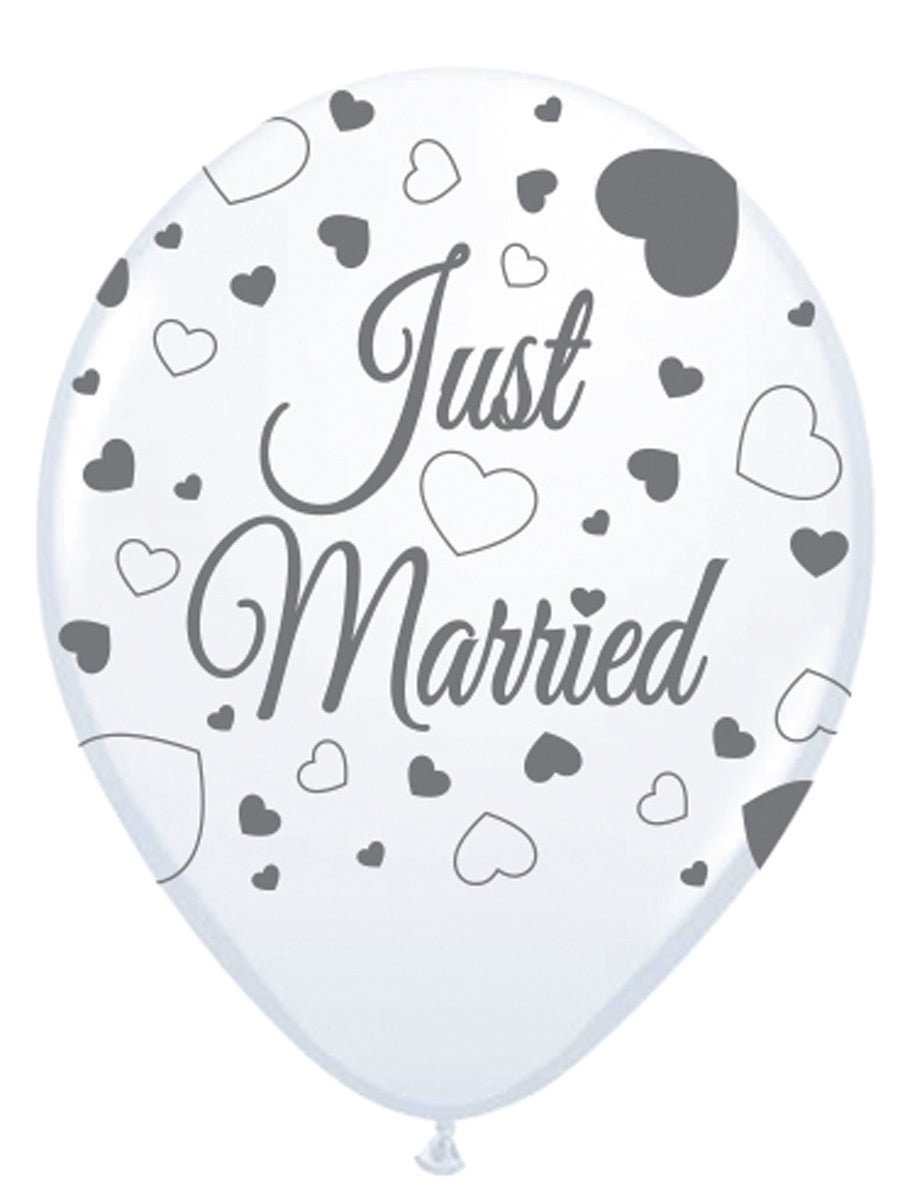 Just Married hääilmapallot - 8 kpl. Sisältö: 8 kpl lateksipalloja. Käytettäväksi esimerkiksi seuraavissa juhlissa/juhlatilaisuuksissa: Häät. Jokainen ilmapallo on kooltaan 12 tuumaa/30 cm. Tuote on valmistettu lateksista.
