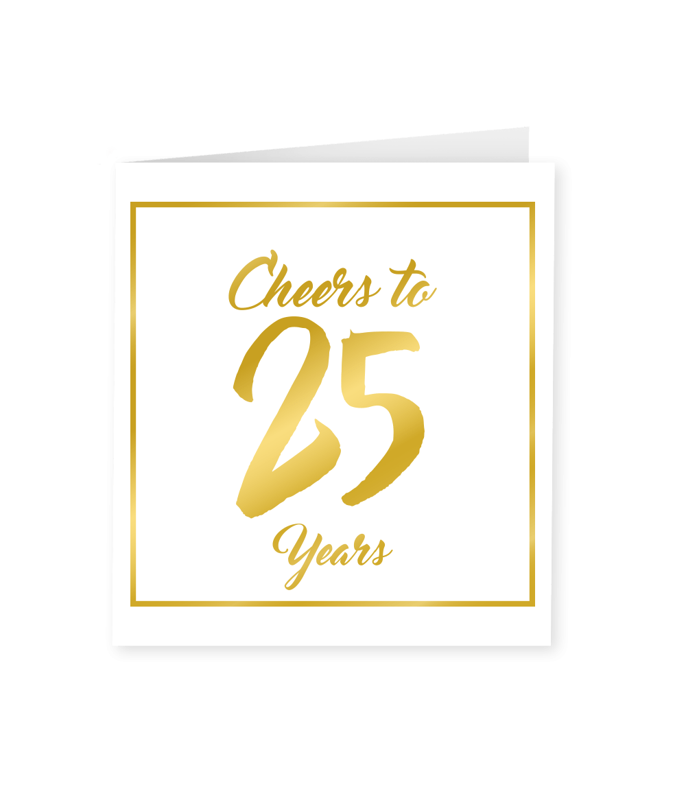 Kortti 25 vuotta kultainen valkoinen 15cm