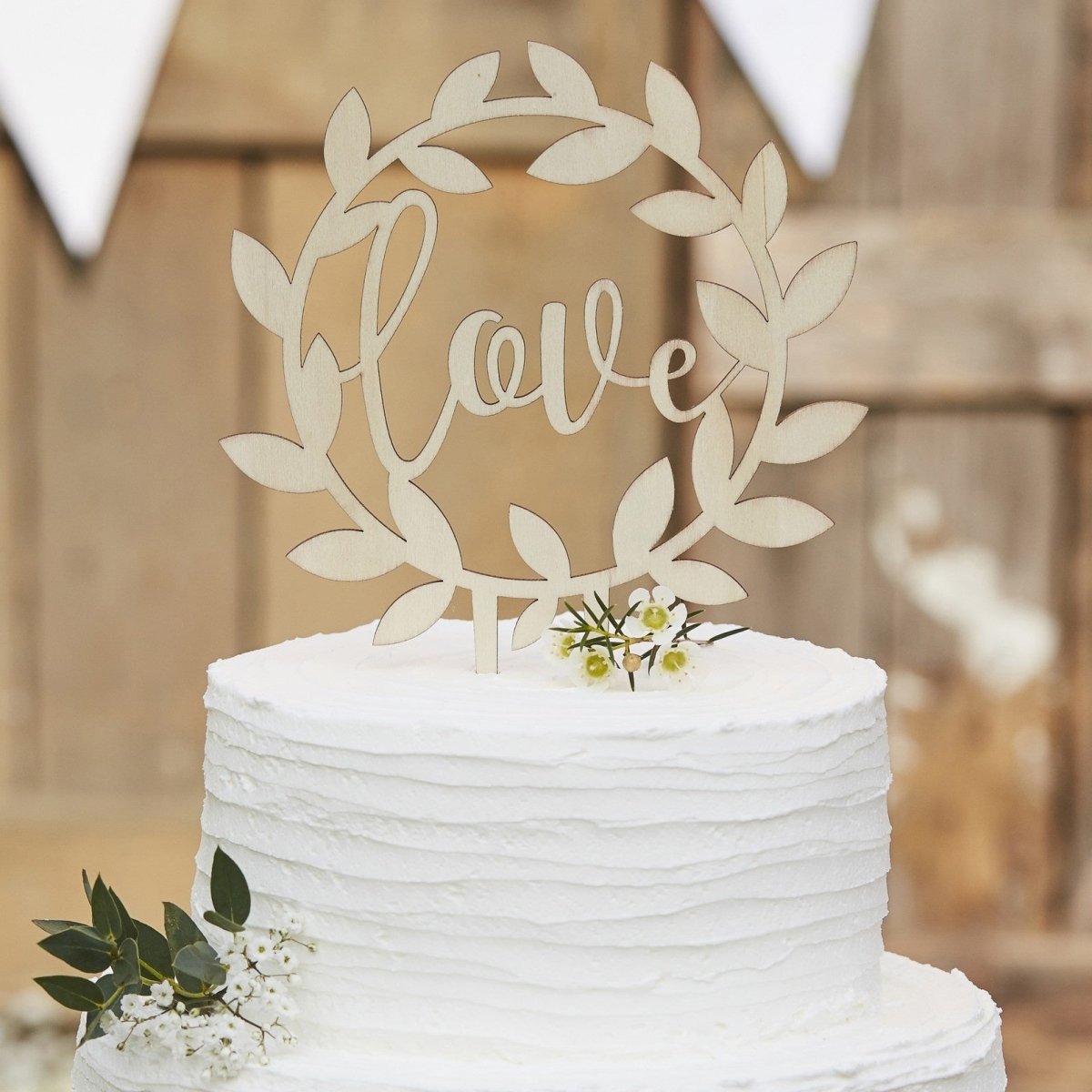 Aseta puinen rakkauskakunpäällysteemme kakun päälle, niin saat todella aidon maalaismaisen tunnelman leikatessasi kakkua tyylikkäästi!