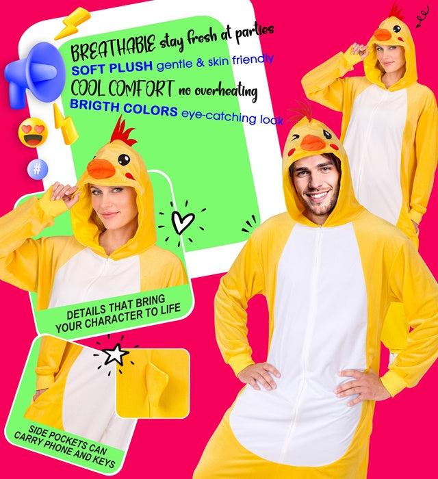 Tämä kanan pehmopuku antaa hauskan ja iloisen ilmeen. Pehmeän materiaalin ja täydellisen muotoilun ansiosta tämä puku sopii täydellisesti juhlavaan pukuhupailuun