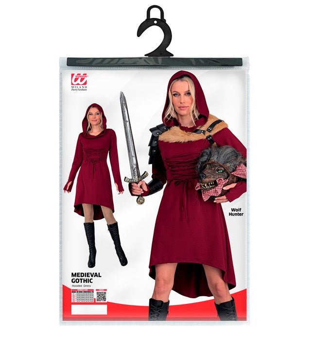 Keskiaikainen goottilainen puku Ladies huppu punainen