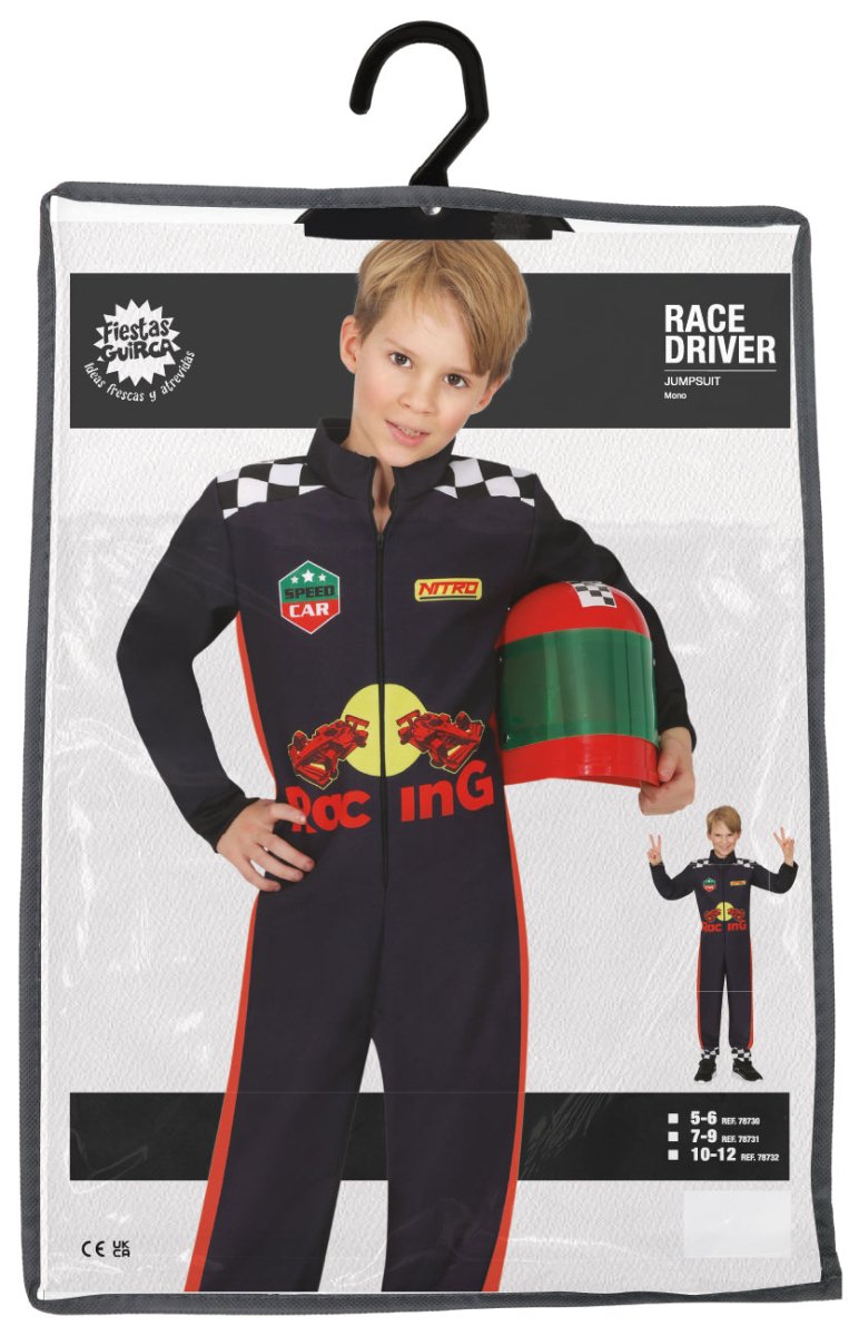 Anna lasten omaksua oikean kilpa-ajajan rooli tämän hienon kilpa-ajopuvun avulla. Ihanteellinen karnevaaleihin, naamiaisiin tai naamiaisjuhliin. Puku koostuu mukavasta, kevyestä ja joustavasta polyesteristä valmistetusta puvusta, joka tekee siitä mukavan ja antaa paljon liikkumisvapautta leikkiessä.