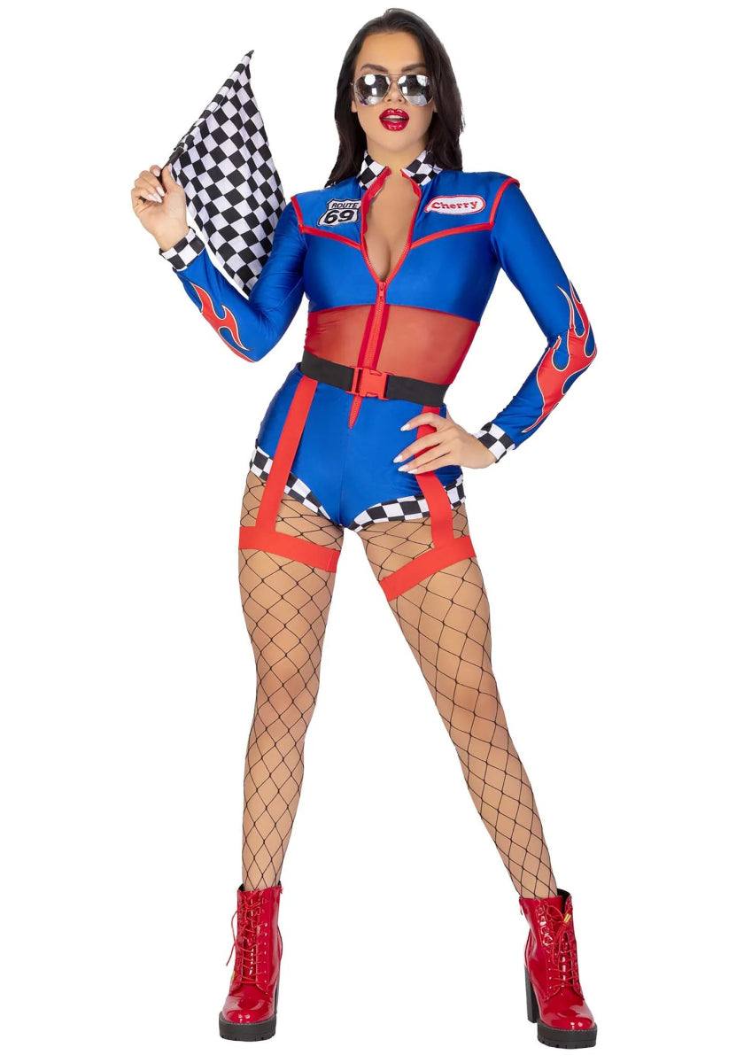 Säädä säännöt moottoripyörä- tai autokilpailussa Leg Avenuen 2-osaisessa Cherry Bomb Racer -asussa ! Tämä jännittävä puku sisältää vetoketjullisen romperin, vyön, jossa on kiinnitetyt henkselit, ja merkkikoristeet. Romperissa on liekkikuvio hihoissa ja seksikäs läpikuultava kangas vyötärön ympärillä. Täydellinen teemajuhliin tai karnevaaleihin, tämä setti saa sinut loistamaan kuin äärimmäinen kilpa-ajodiiva! 🚗💥