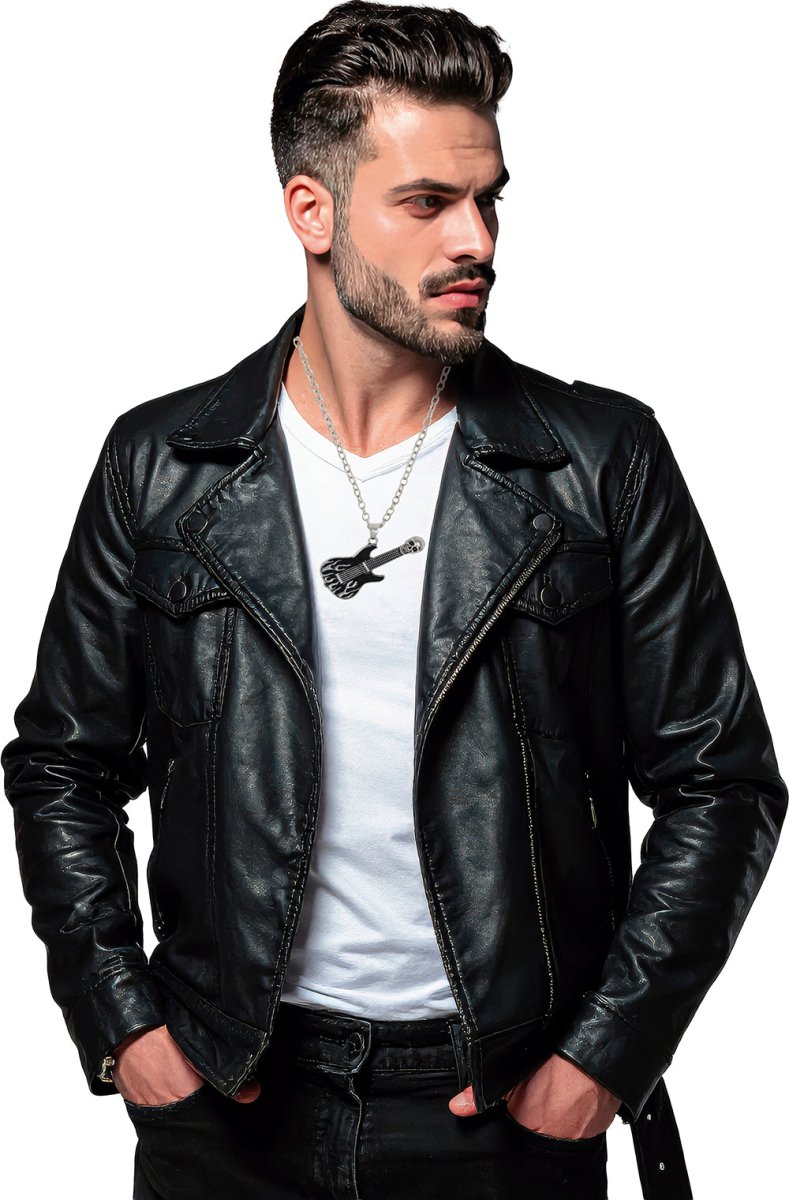 Näytä musiikillinen puolesi tällä tyylikkäällä kaulakorulla, jossa on sähkökitarariipus. Musta ja hopeinen viimeistely antaa kaulakorulle viileän ja modernin ilmeen, joka sopii täydellisesti musiikkifaneille, festivaaleille tai teemajuhliin. Kestävästä metallista valmistettua kaulakorua on mukava käyttää sekä rennosti että näyttävänä asusteena puvun kanssa.