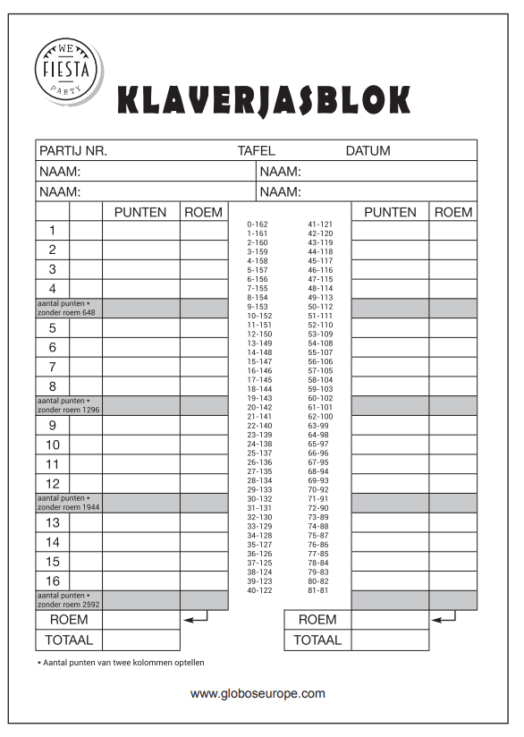 Klaverjas Scorepad 21cm 50 sivua