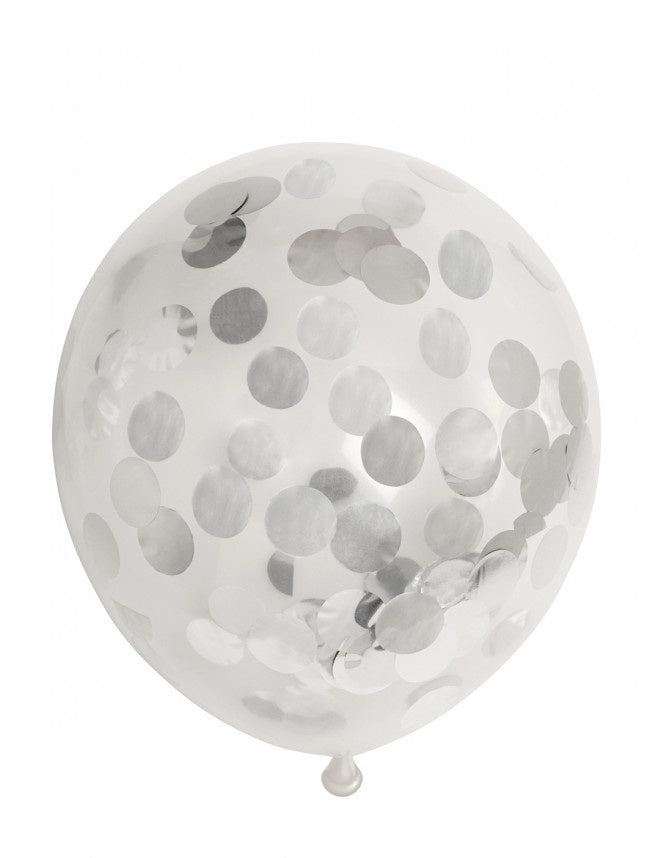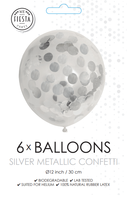 Konfetti ilmapallot hopea 30cm 6kpl