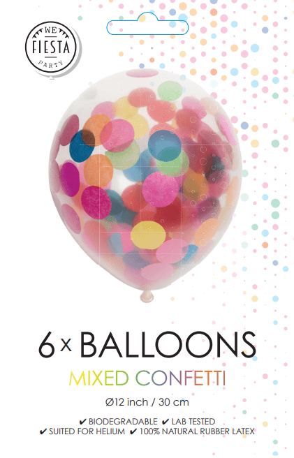 Konfetti ilmapallot värilliset 30cm 6kpl