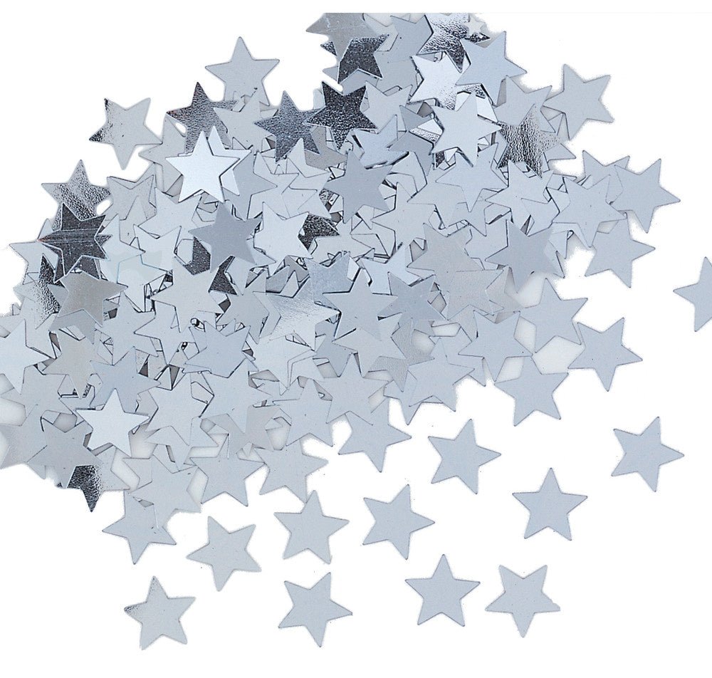Pakkauksen sisältö:Tähdet konfetti hopea 1cm 14gr