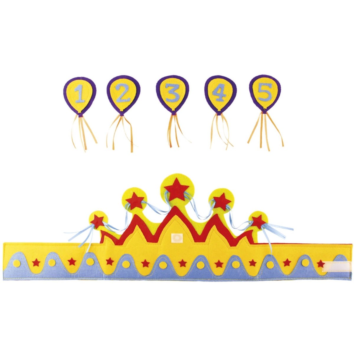 Syntymäpäiväkruunu Ikä 1-5 vuotta Poika. Sisältö: 1 kruunu. Käytettäväksi esimerkiksi seuraavissa juhlissa/juhlatilaisuuksissa: Lasten juhlat. Kruunussa on 5 numeroa, jotka voi laittaa kruunuun (1, 2, 3, 4 ja 5). Tuote on valmistettu muovista.