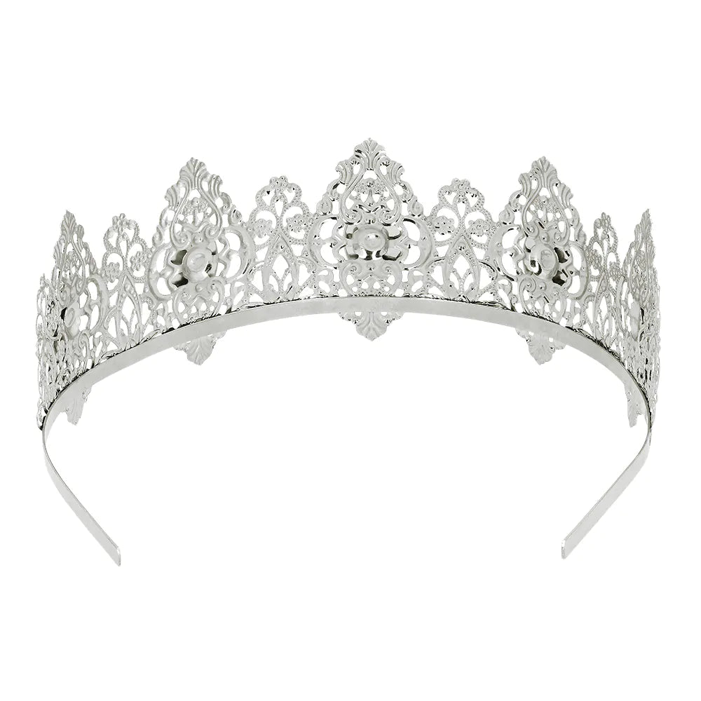 Tämä kaunis hopeametallinen tiara on täydellinen lisävaruste kuninkaalliseen asuun suoraan keskiajalta. Yksityiskohtaisen muotoilunsa ja kimaltelevien rubiiniensa ansiosta tämä kruunu sopii täydellisesti teemajuhliin, cosplay-tapahtumiin, naamiaisiin ja karnevaaleihin.