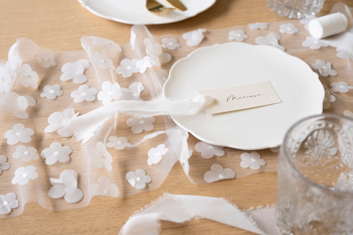 Kukkainen pöytäjuoksija läpinäkyvä 5m