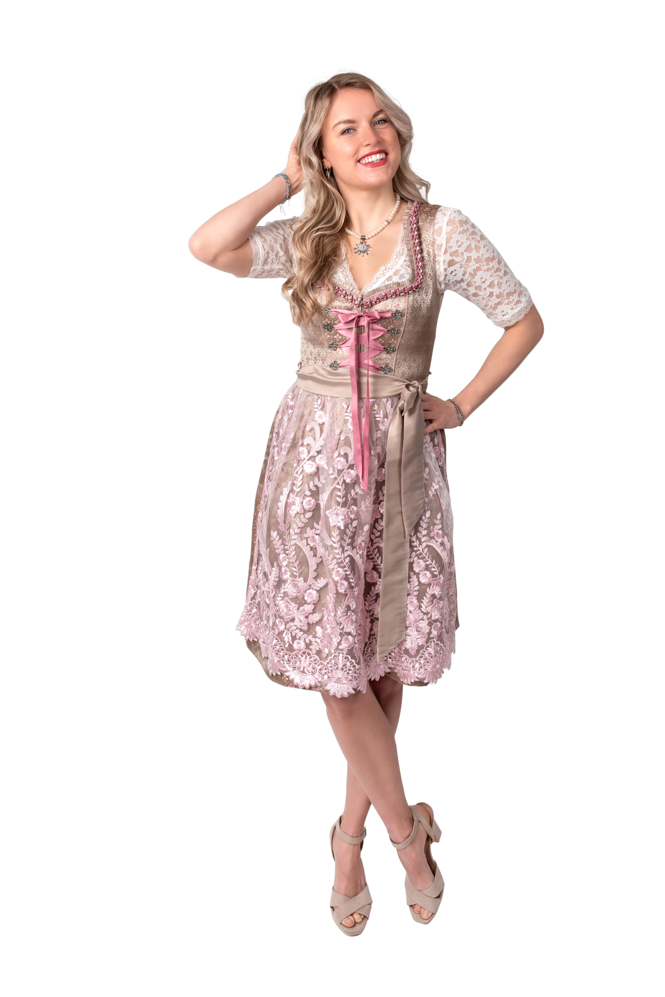 Gold Pink Dirndl Mekko Oktoberfest Hyvät 2 kpl