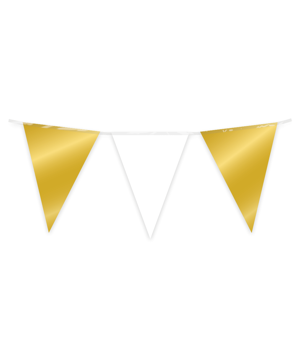 Ei juhlia voi pitää ilman lippuja, ja jos ostat tämän juhlalippujen folio kulta-valkoinen tällöin saat heti kotiisi ainutlaatuisella väriyhdistelmällä varustetun lippulinjan! Liput on valmistettu foliosta ja lippusiima on 10 metriä pitkä