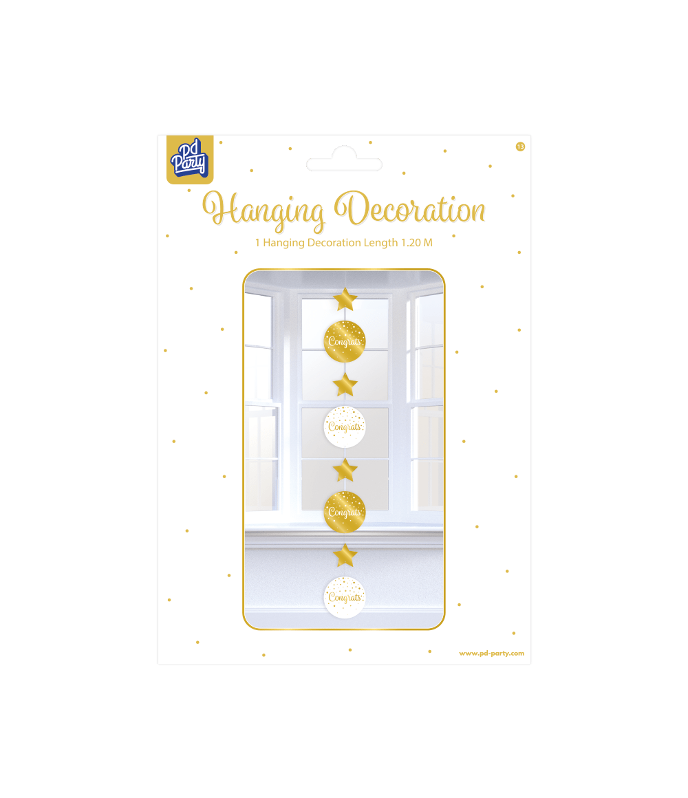 Kultainen valkoinen roikkuva koriste Congrats 17cm
