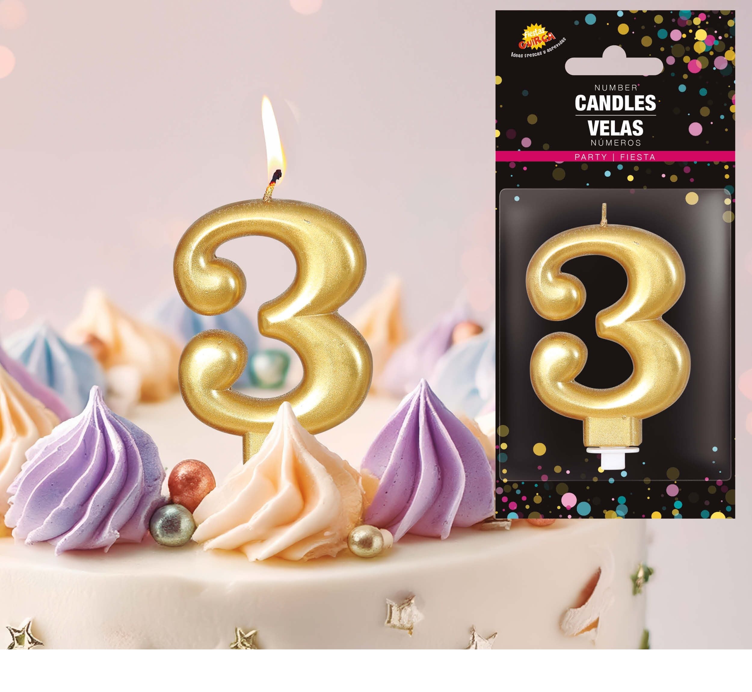 Kultainen kynttilä 3 vuotta Metallinen 8cm