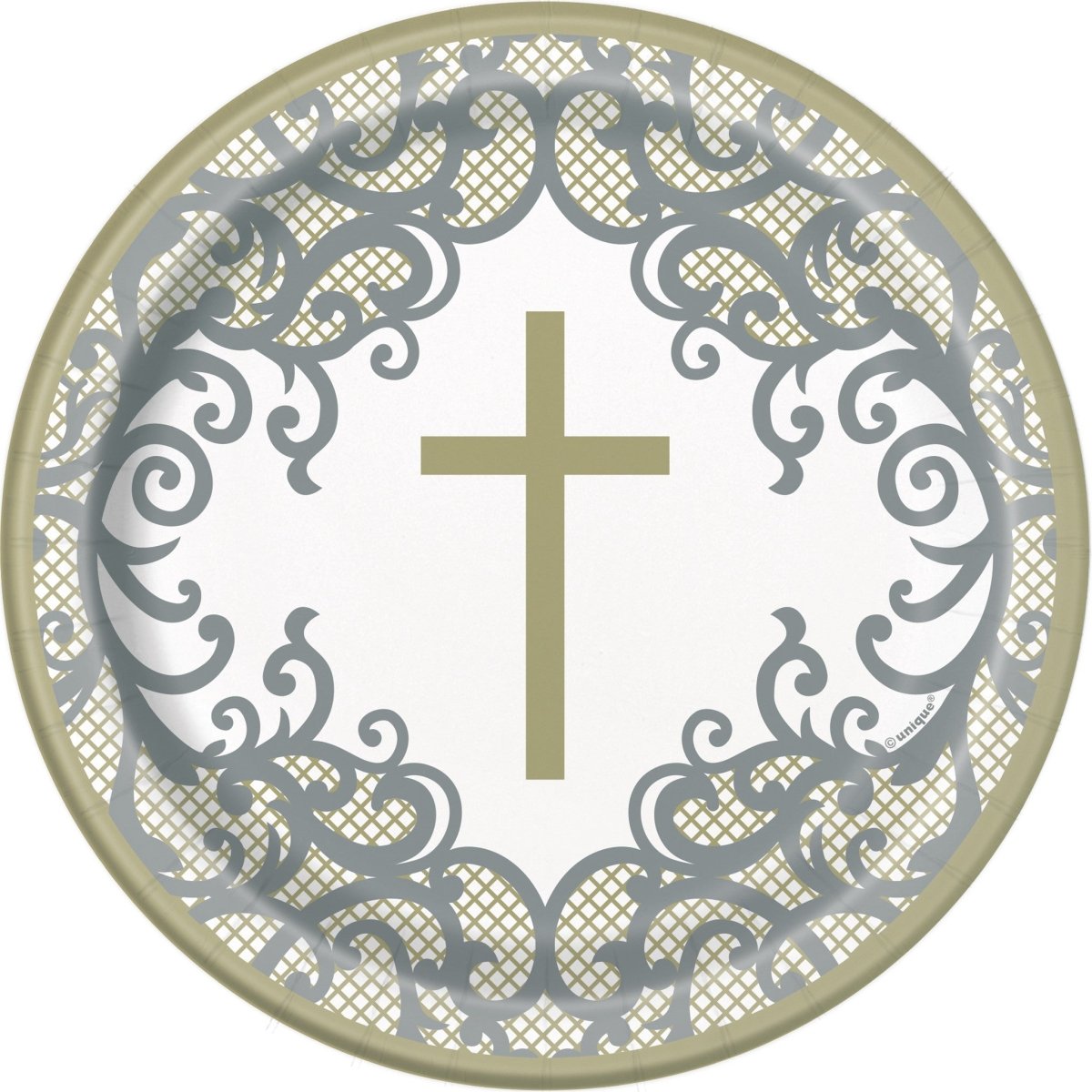Kultaiset ristiäiset juhlalautaset 18cm 8kpl